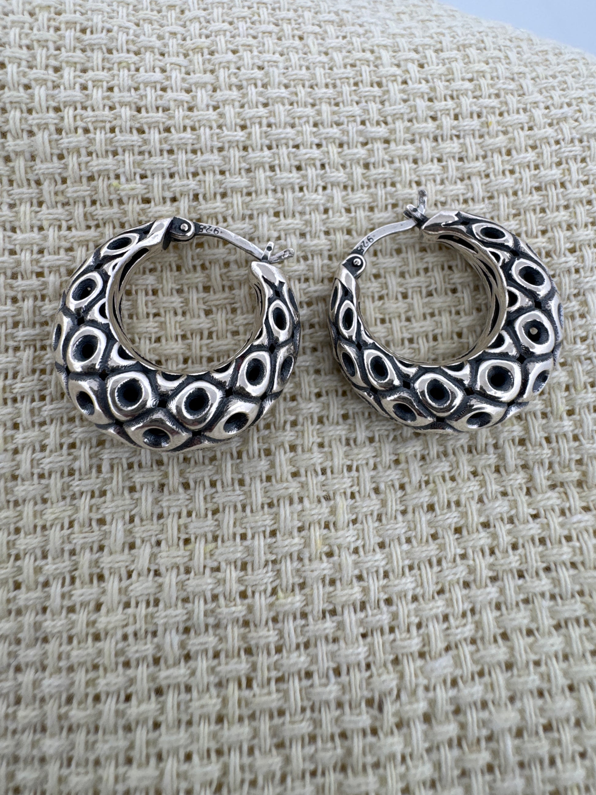 925 Sterling Silver Chunky Fish Eye Hoop Earrings for Women